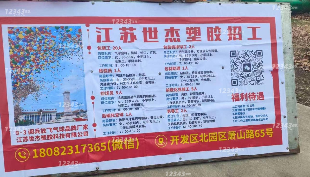 江苏世杰塑胶科技有限公司招工包装机掺球工沭阳 沭阳开发区 2026-02-24 -