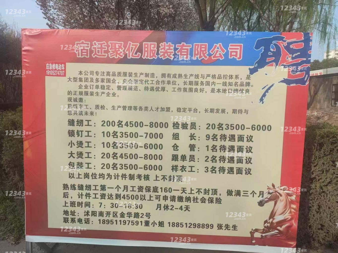 宿迁聚亿服装有限公司更新于1天前沭阳 沭阳开发区#企业招聘 -