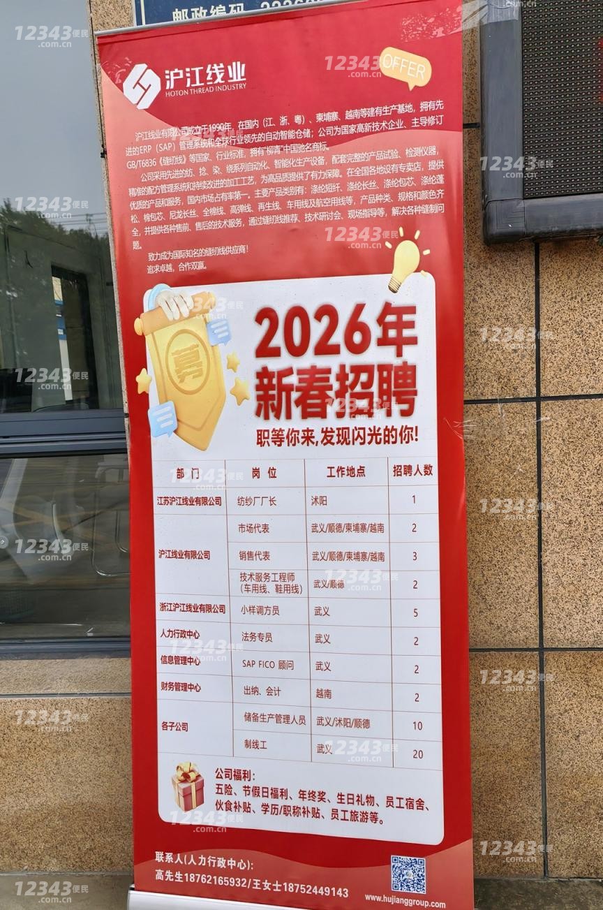 沪江线业更新于9小时前沭阳 沭阳开发区#企业招聘 -