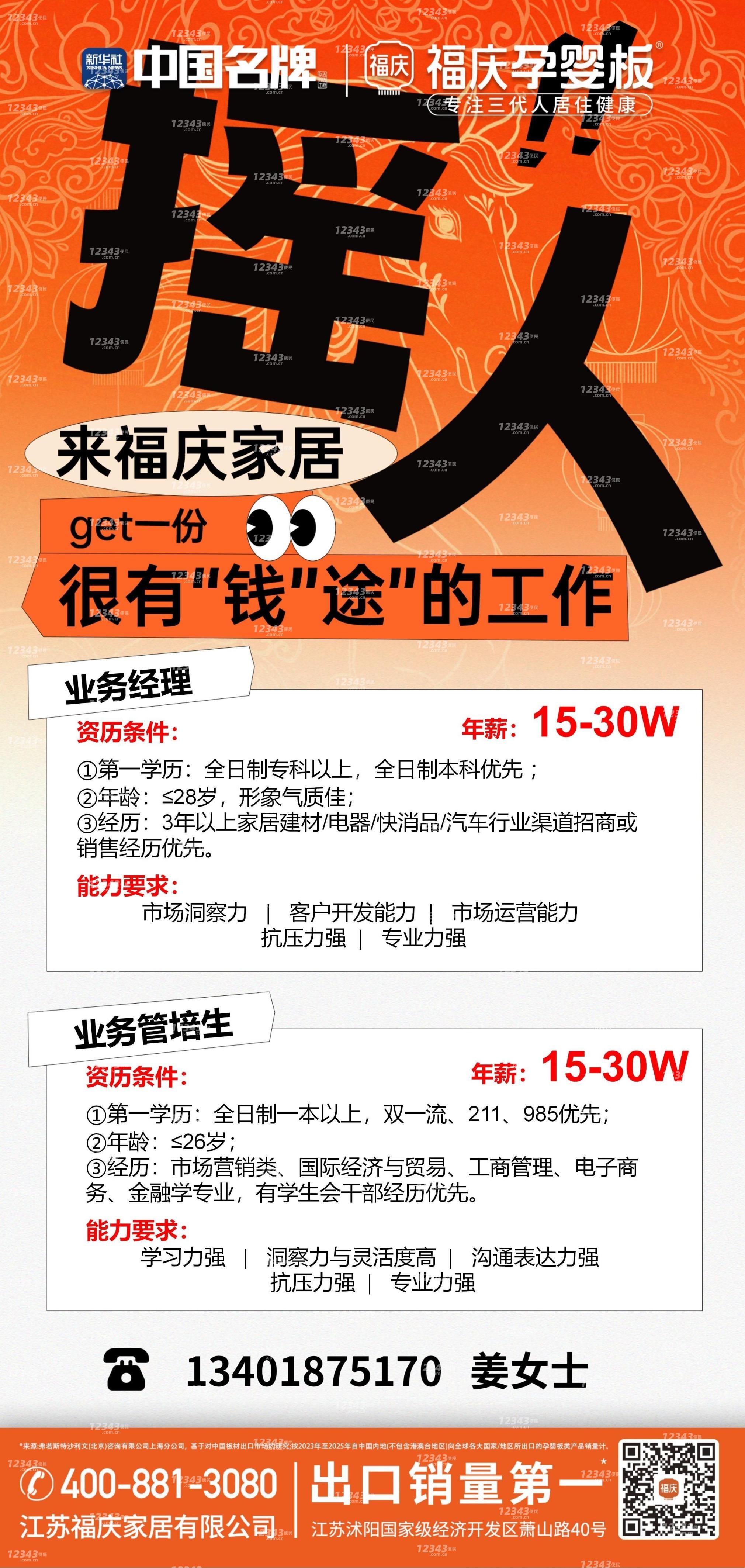 江苏福庆家居有限公司招聘业务经理资历条件