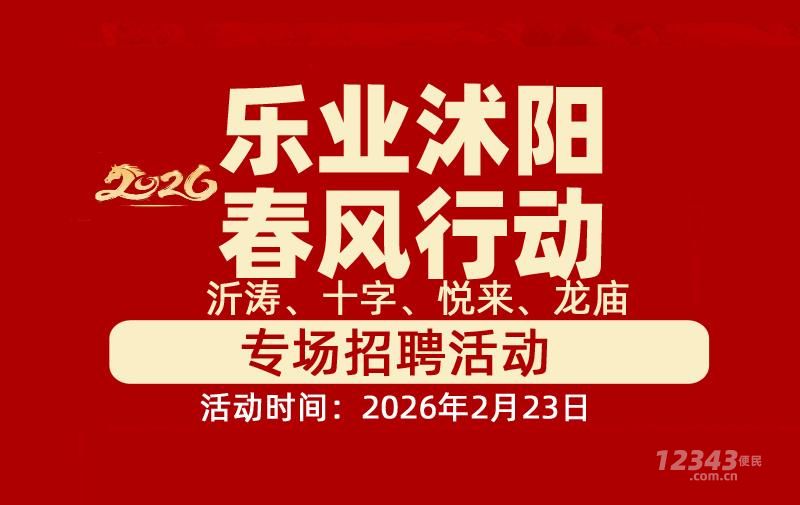 2026年“乐业沭阳“春风行动”沂涛、十字、悦来、龙庙镇招聘活动[现场招聘会] 2026年“乐业沭阳“春风行动”沂涛、十字、悦来、龙庙镇招聘活动2/23 08:02 - 2/23 17:02 -