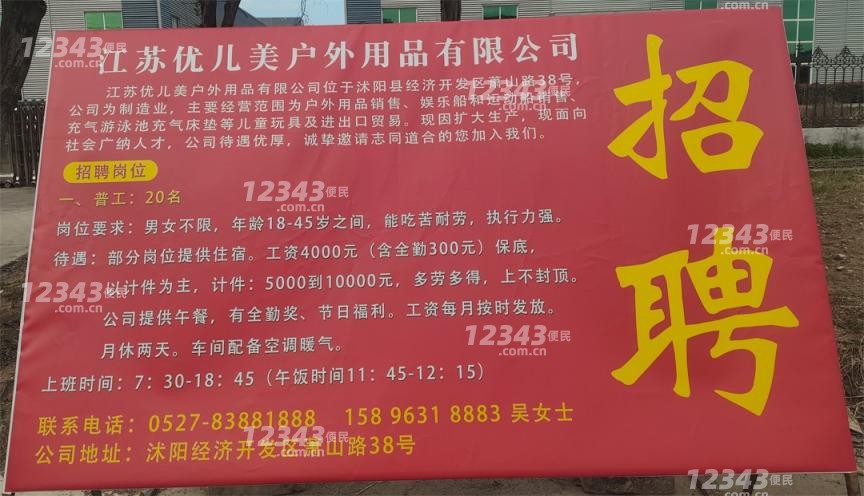 岗位要求:男女不限,年龄18-45岁之间,能吃苦耐劳,执行力强。待遇: 部分岗位提供住宿。工资4000元 (含全勤300元)保底,