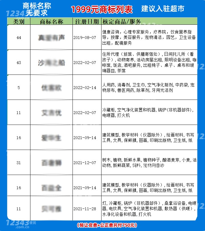 沭阳买商标,特价1999元起,仅限汉字,无图形、无要求!快至当天买,当天用!