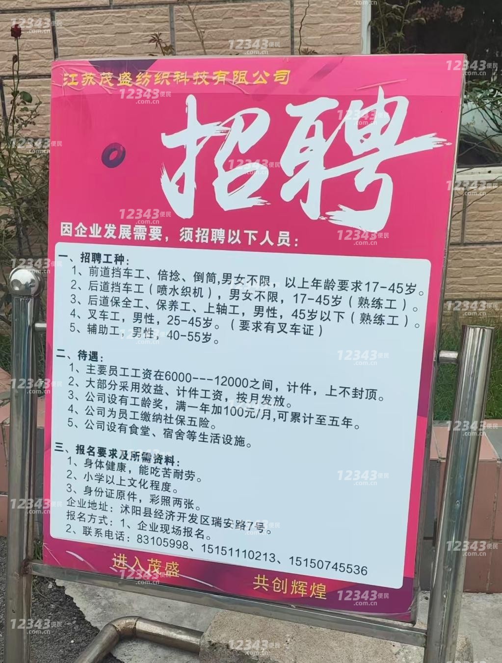 1、前道挡车工、倍捻、倒筒,男女不限,以上年龄要求17-45岁。