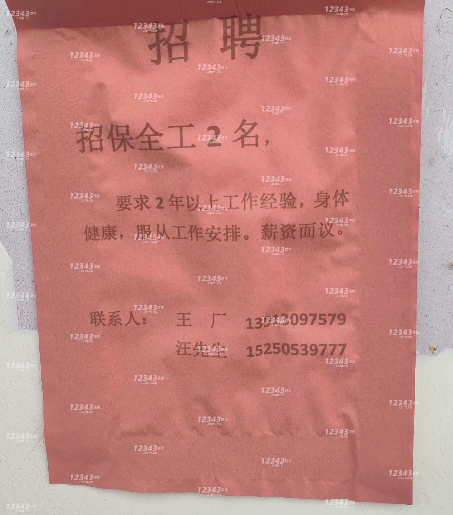 要求2年以上工作经验,身体健康,服从工作安排。薪资面议。
