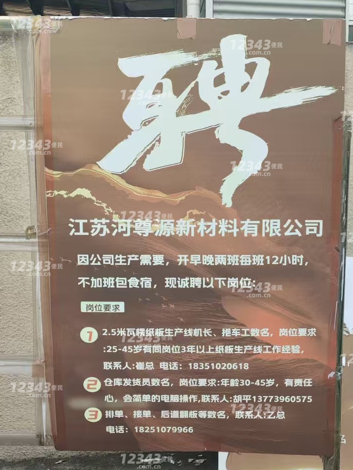 2.5米瓦楞纸板生产线机长、抱车工数名,岗位要求:25-45岁有同岗位3年以上纸板生产线工作经验,