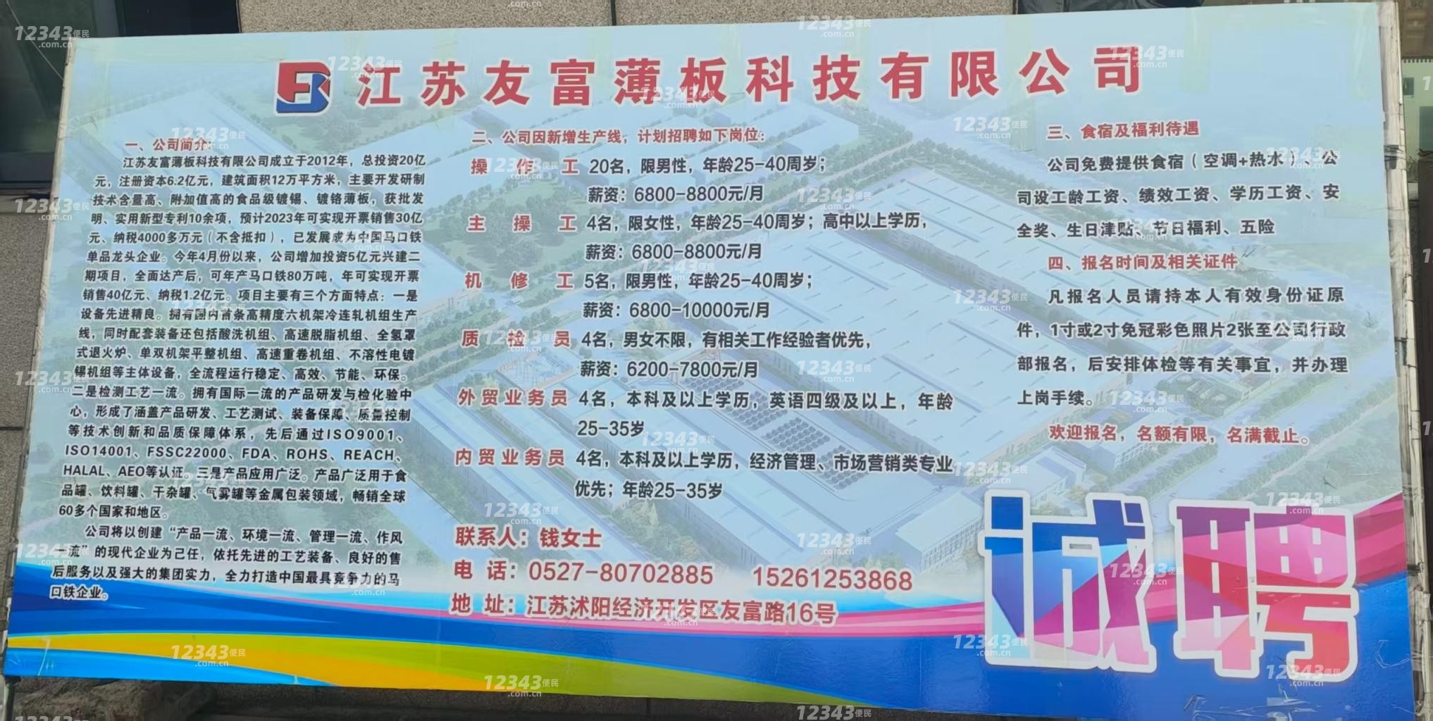 限男性,年龄25-40周岁;公司免费提供食宿(空调+热水)、薪资:6800-8800元/月