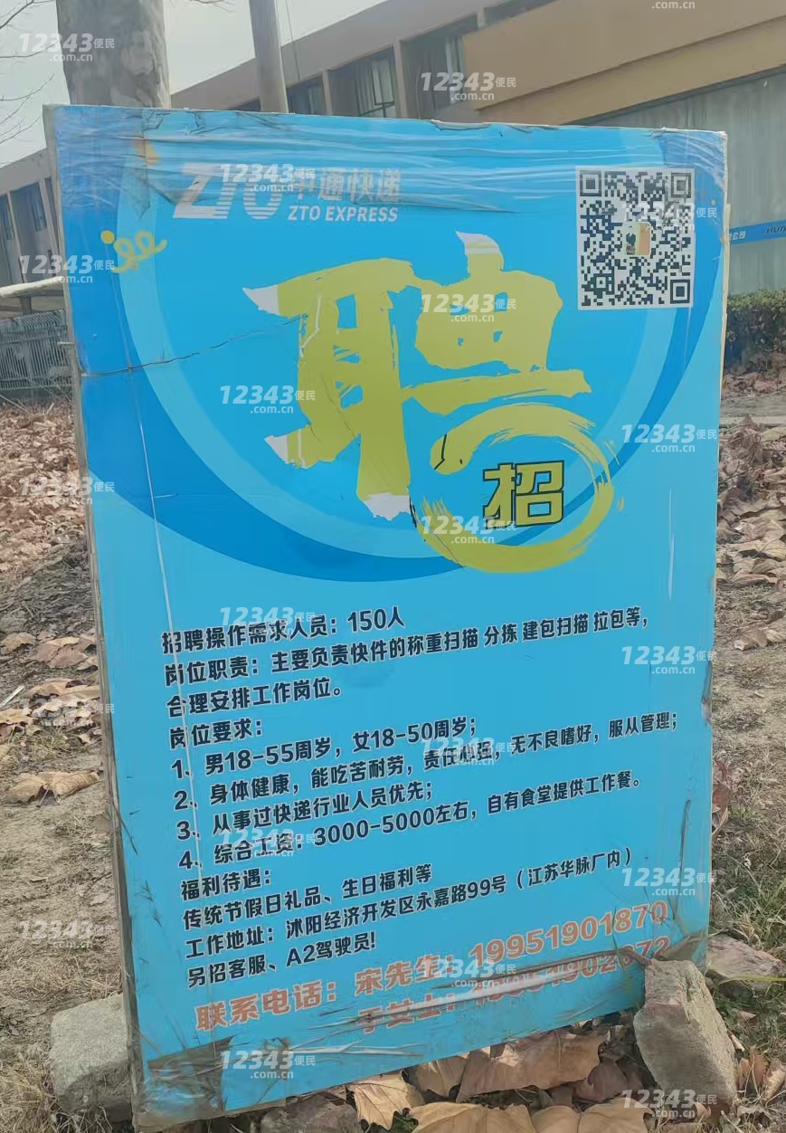 沭阳中通快递招聘操作需求人员:150人岗位职