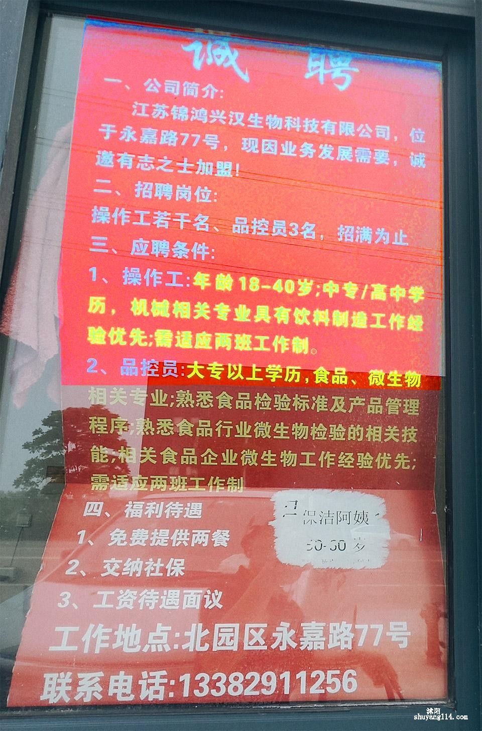江苏锦鸿兴汉生物科技有限公司更新于1天前江苏省宿迁市沭阳县永嘉路77号#企业招聘 -