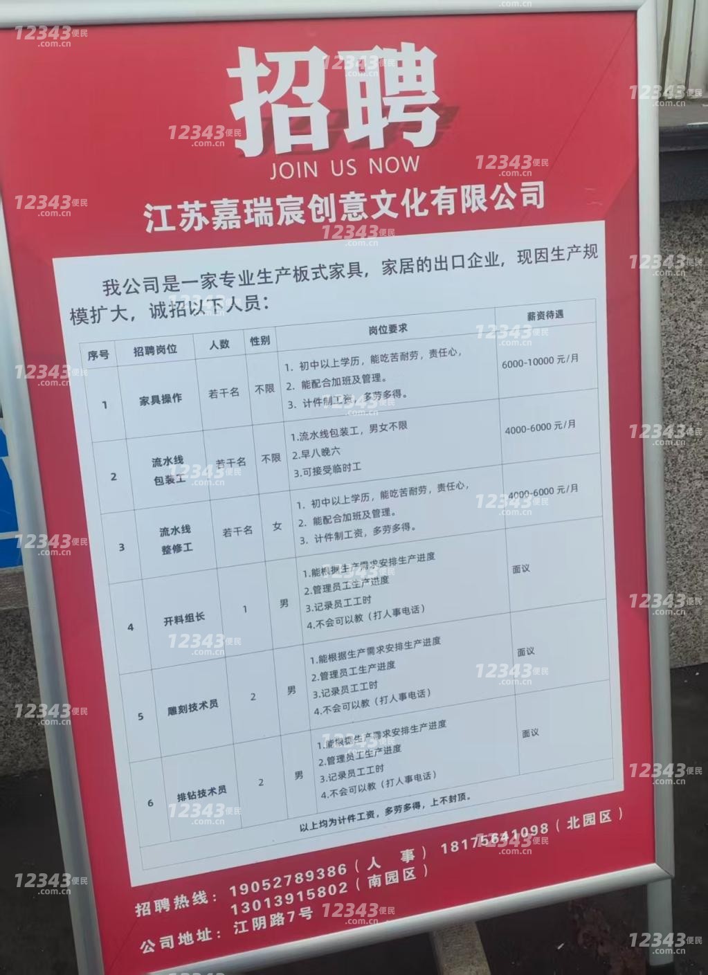 招聘热线:190****9386(人 事)1817***1098(北园区1301****802(南园区