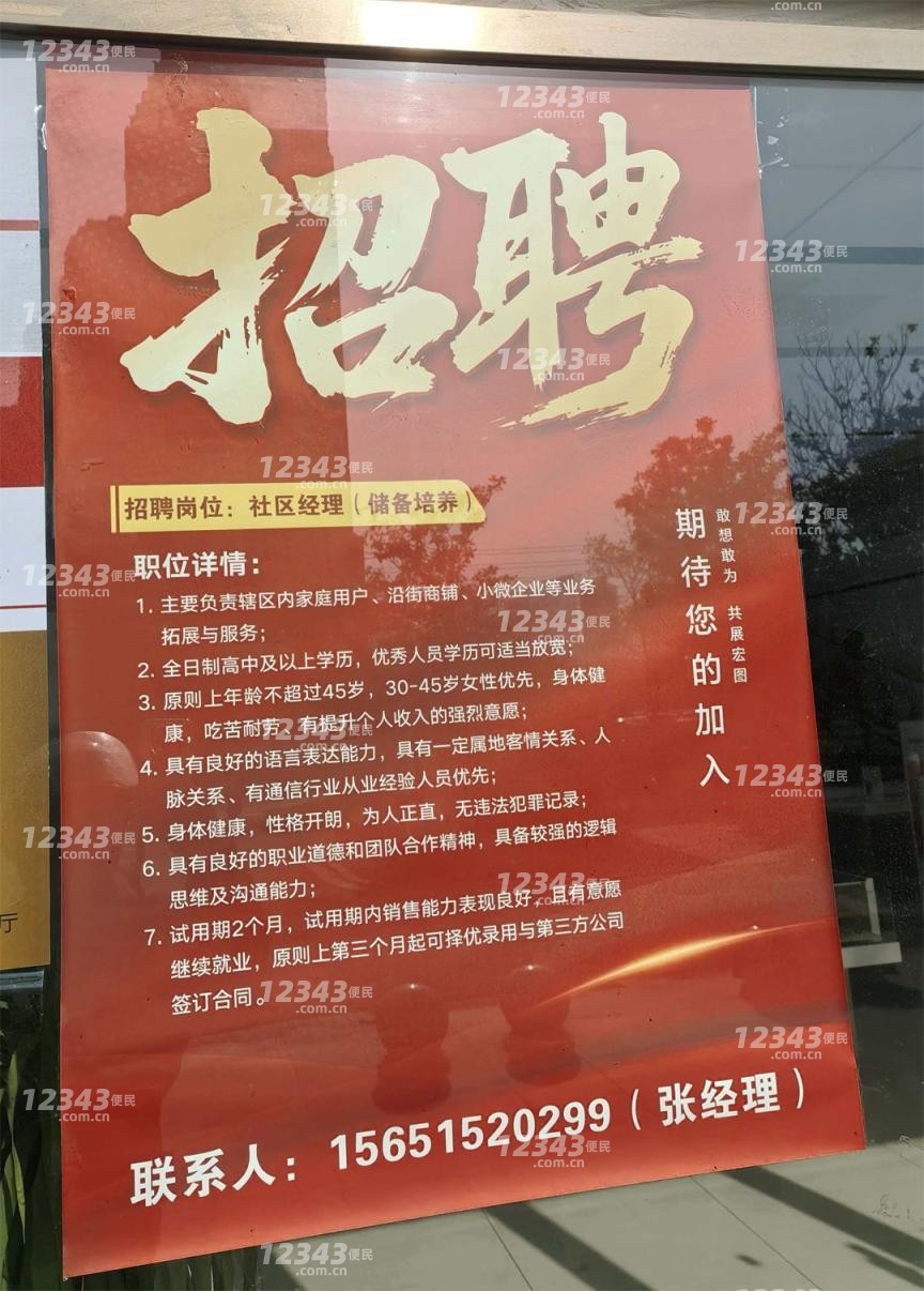 2.全日制高中及以上学历,优秀人员学历可适当放宽;3.原则上年龄不超过45岁,30-45岁女性优先,身体健康,吃苦耐劳、有提升个人收入的强烈意愿;4.具有良好的语言表达能力,具有一定属地客情关系、人脉关系、有通信行业从业经验人员优先;